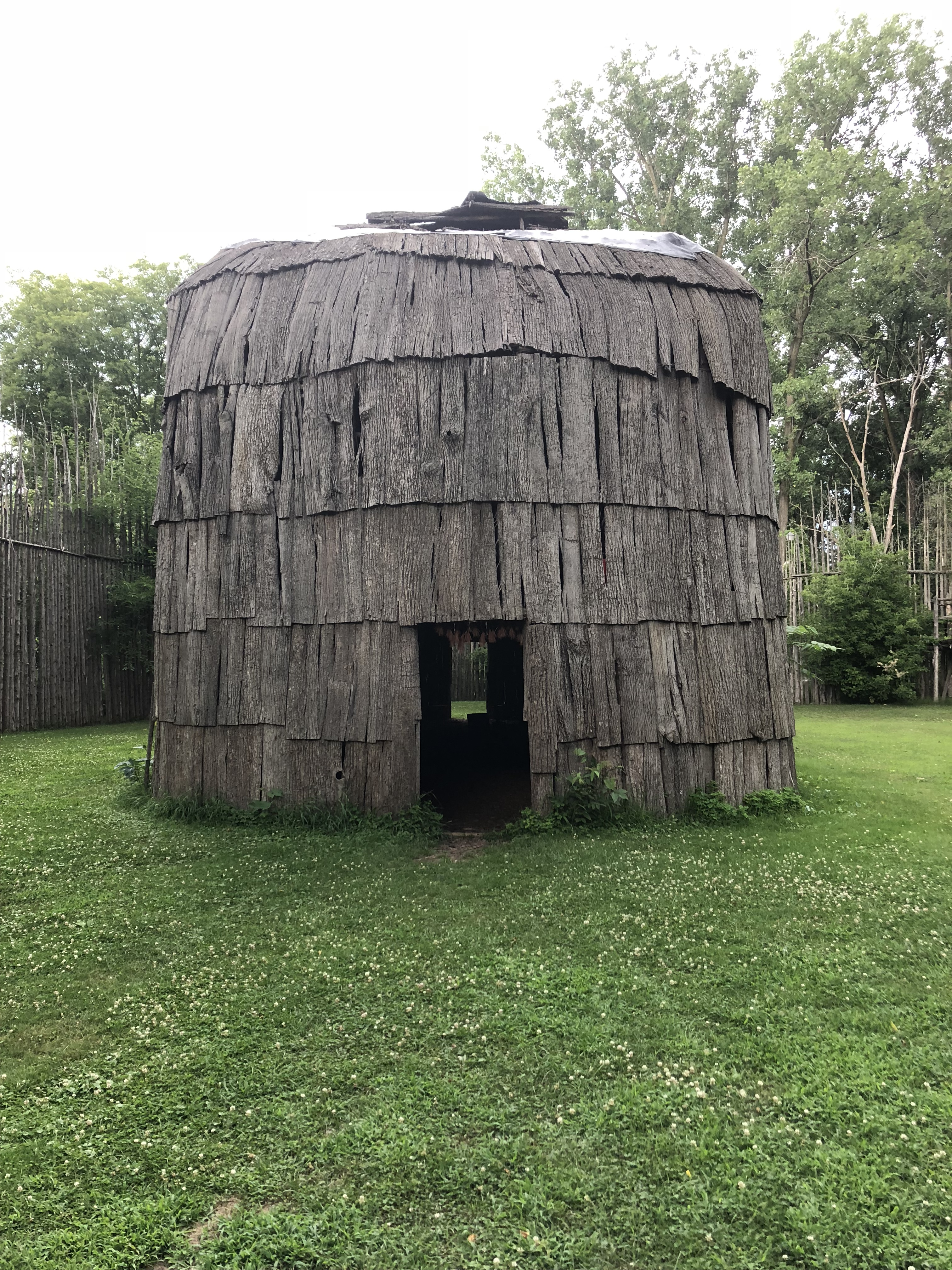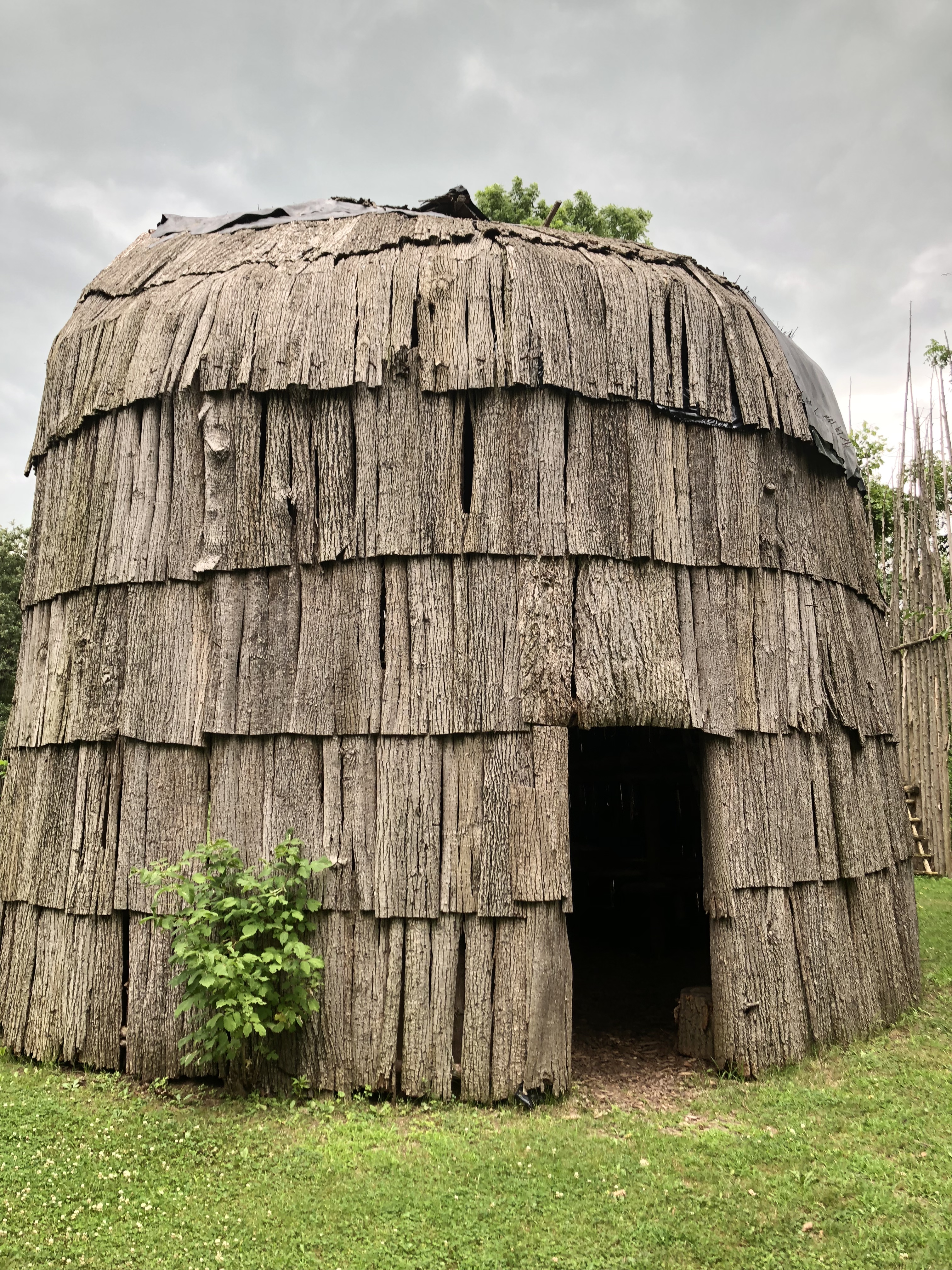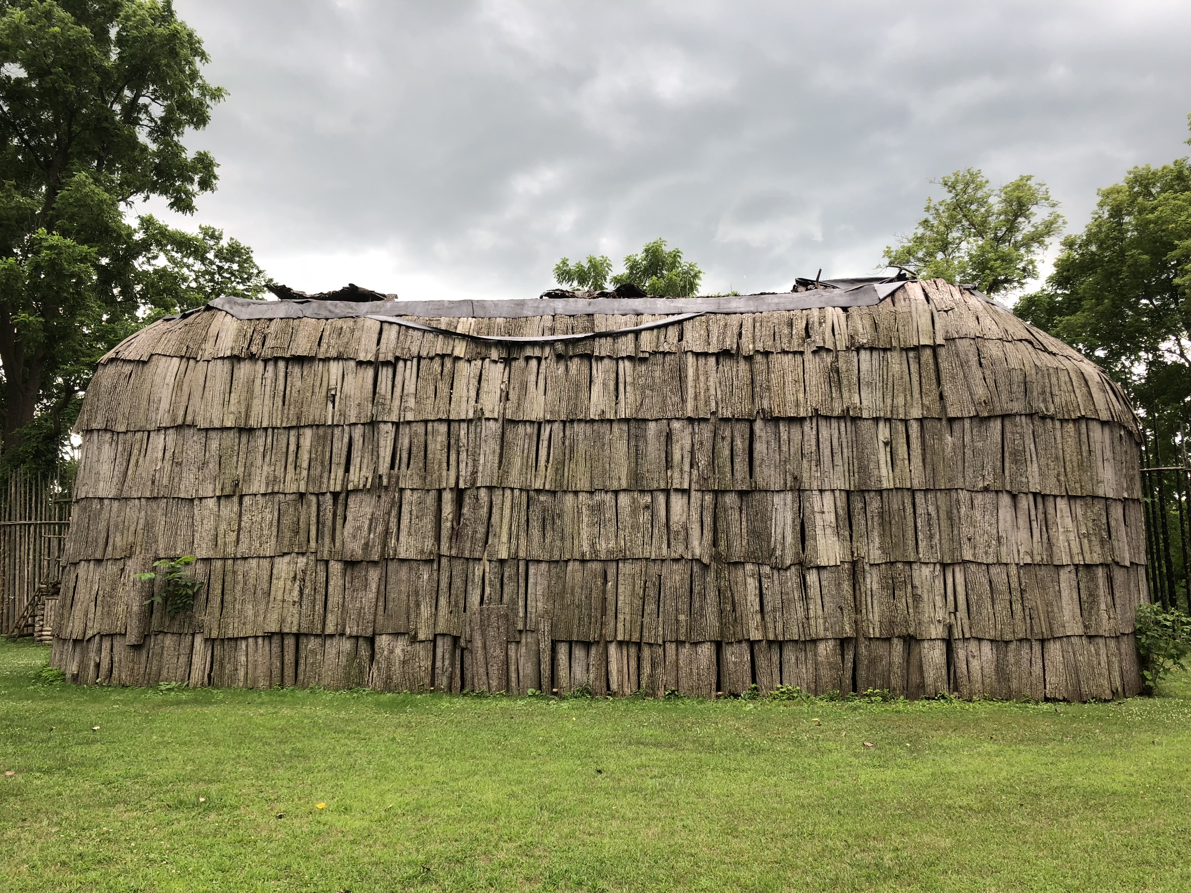 Different regions of Turtle Island had different building styles, depending on climate. In Ontario, the Haudenosaunee and the Wendat people lived in longhouses. Here are some photos of a reconstructed Haudenosaunee longhouse on the Six Nations Reserve.