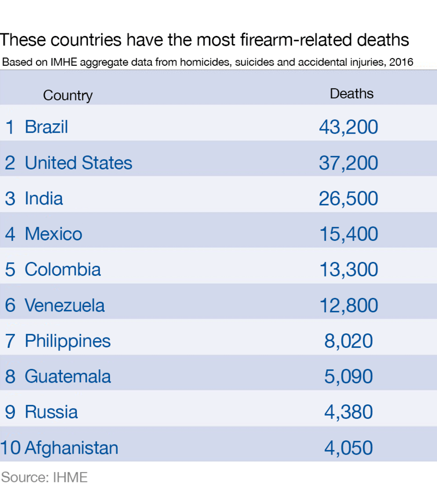 Comparative data for gun deaths around the world seems to only be available up to 2016.