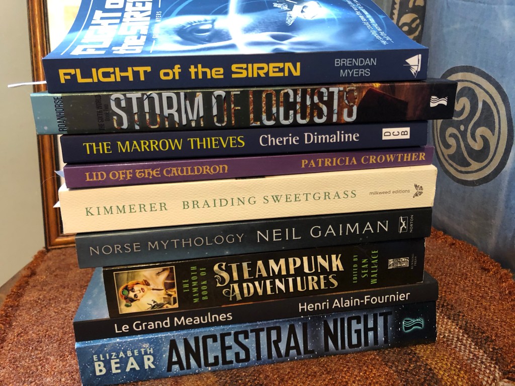 Outstanding, awesome retelling of the Norse myths by Neil Gaiman. Beautifully written, and I think his style is very well suited to these stories. He’s selected all the classic tales — Thor and the Midgard serpent, the mead of poetry, the creation story, the death of Balder, the binding of the Fenris wolf, the binding of Loki, the eating contest at the giants’ hall where Thor drinks the ocean, Loki competes with wildfire, and Thialfi competes with old age. He also includes details that I’ve not seen before, such as how bad poetry happens (this explains a lot). Whether you are a Norse mythology expert or a newbie or somewhere in between, I think you’ll enjoy this retelling, which is both faithful and fresh.