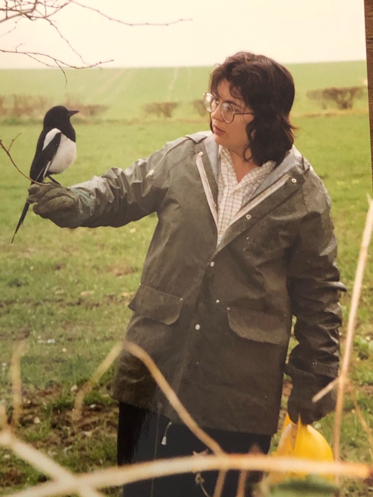 When the above photo was taken, I was doing a countryside management course. The first place we went was called Great Covens Wood (I kid you not!) We found this magpie in a field looking very poorly (it seemed to have ingested some pesticide) and took it back to our campfire and shared our lunch with it. After a while it felt better and flew up into a tree.