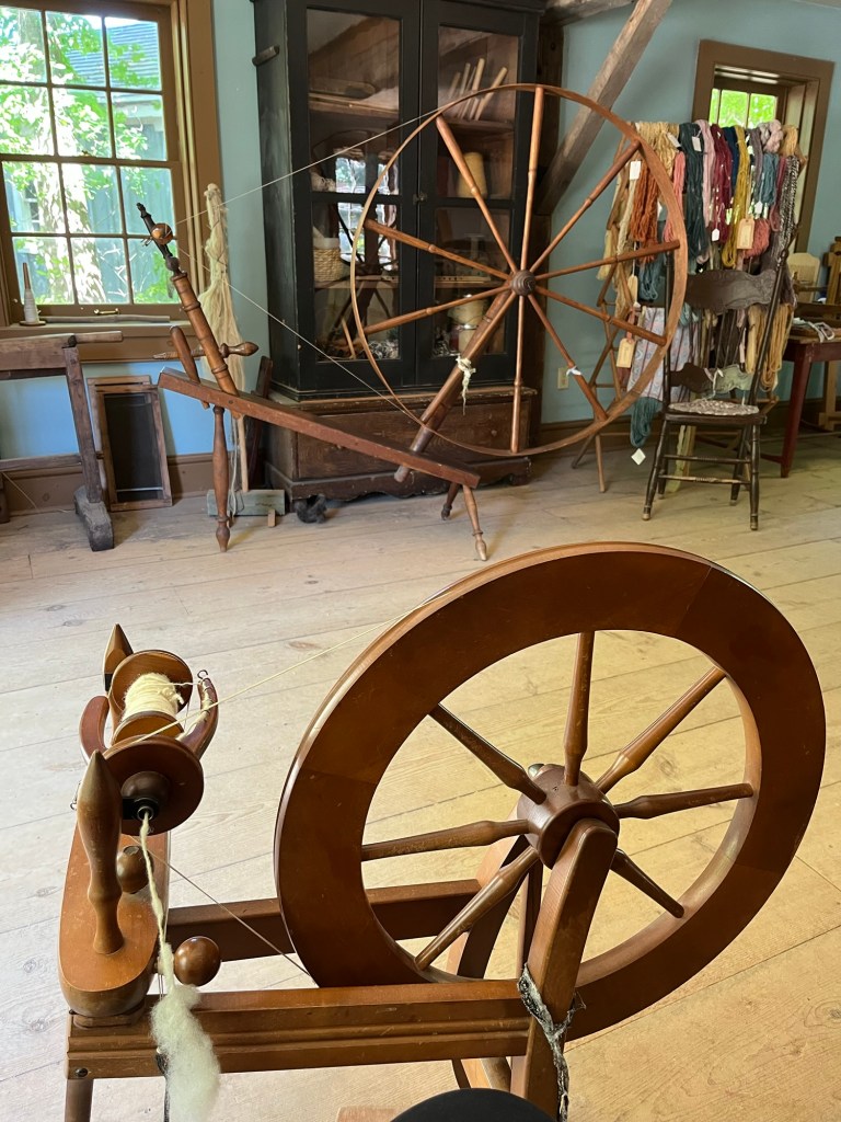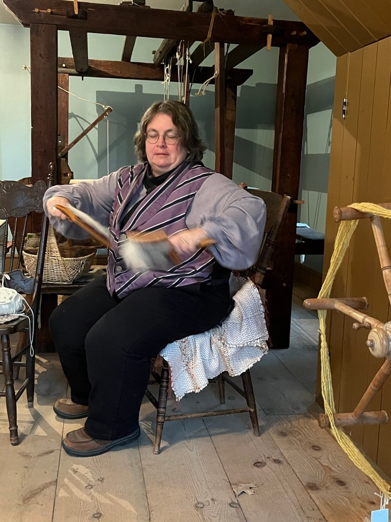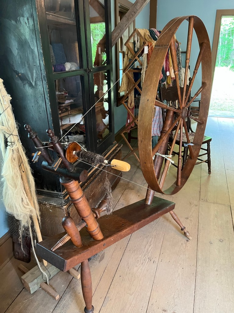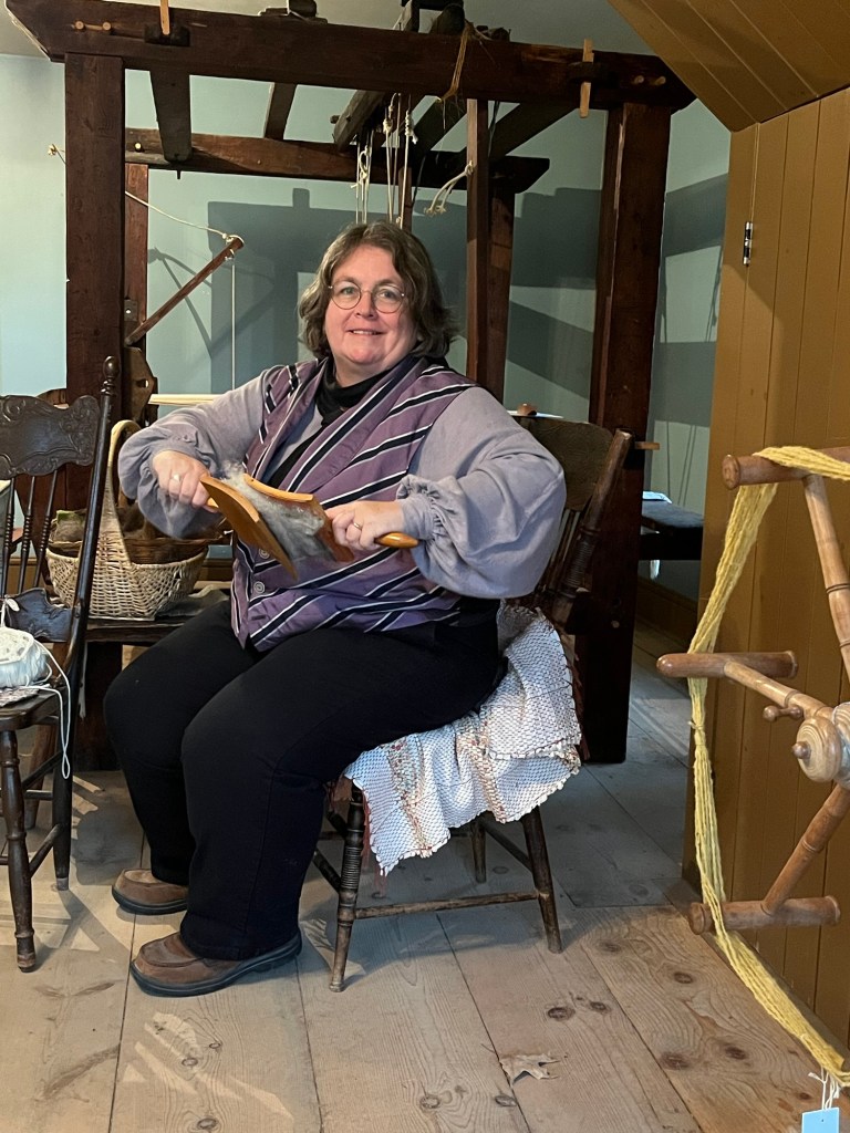A few photos of our historical interpretation activities at our local heritage village. I’ve been learning to spin and weave; Bob has been doing carpentry.