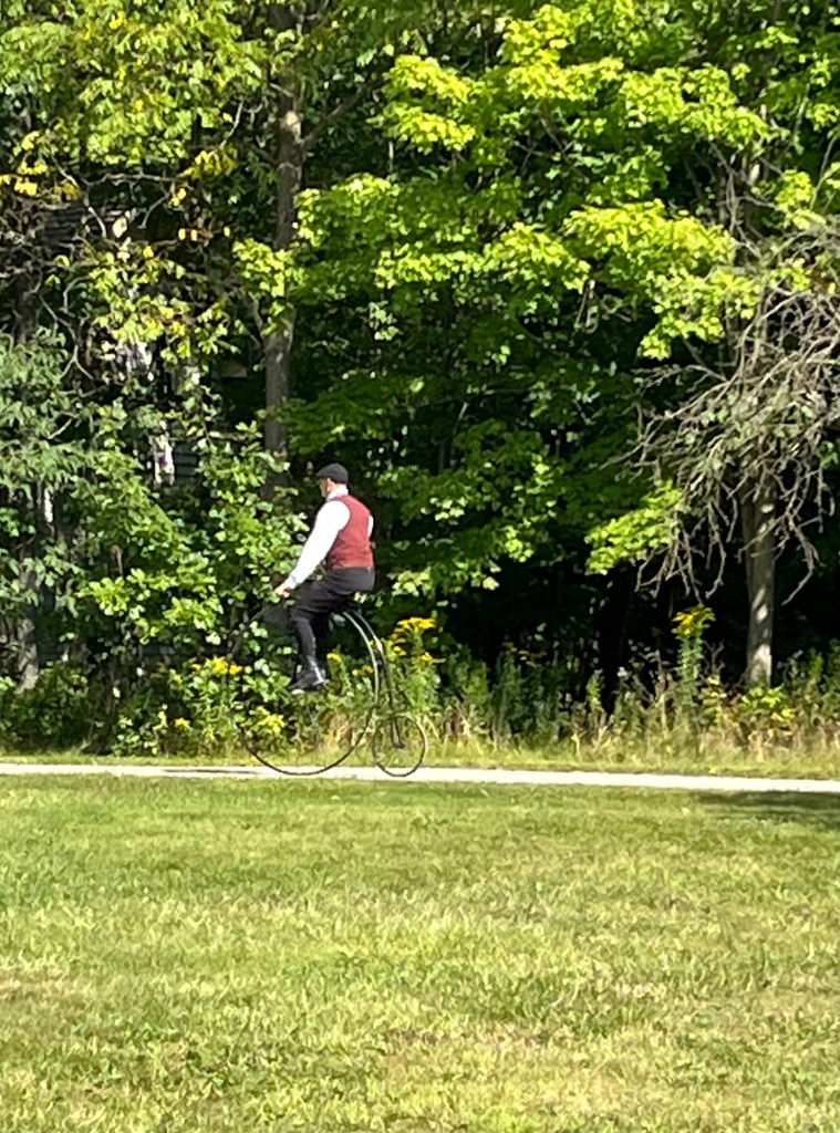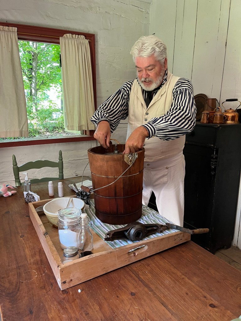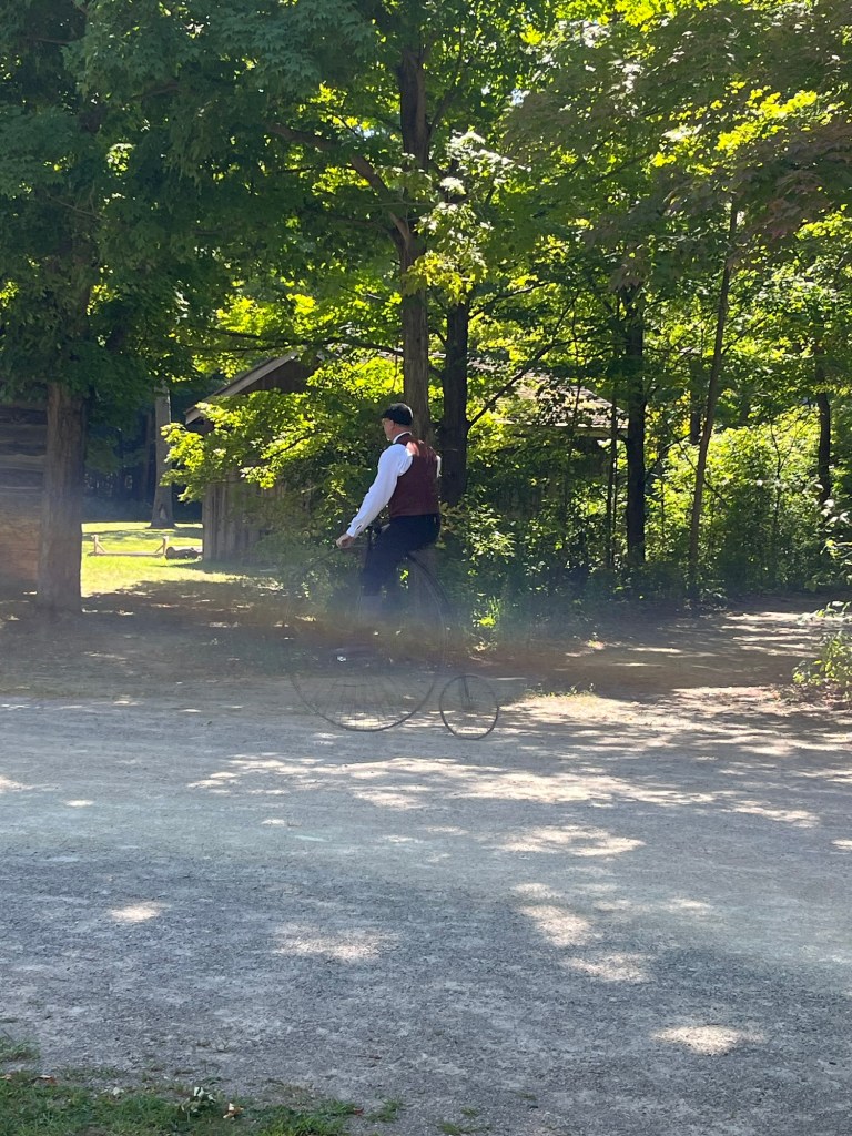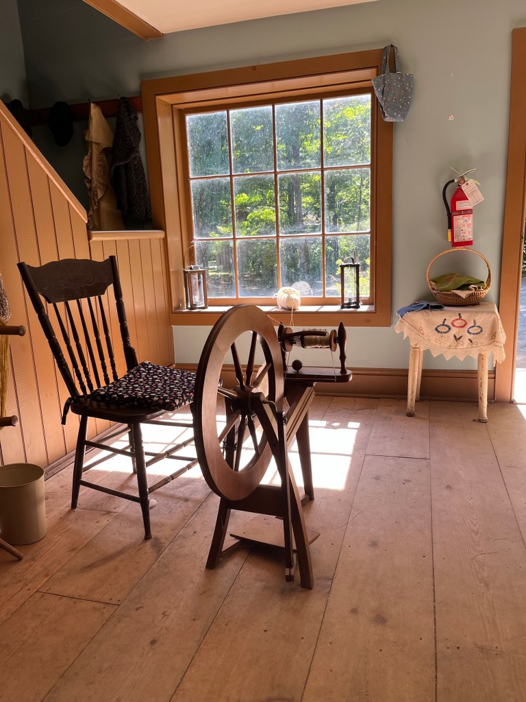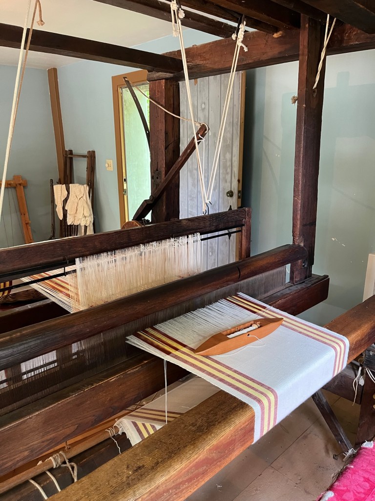 A few photos of our historical interpretation activities at our local heritage village. I’ve been learning to spin and weave; Bob has been doing carpentry.